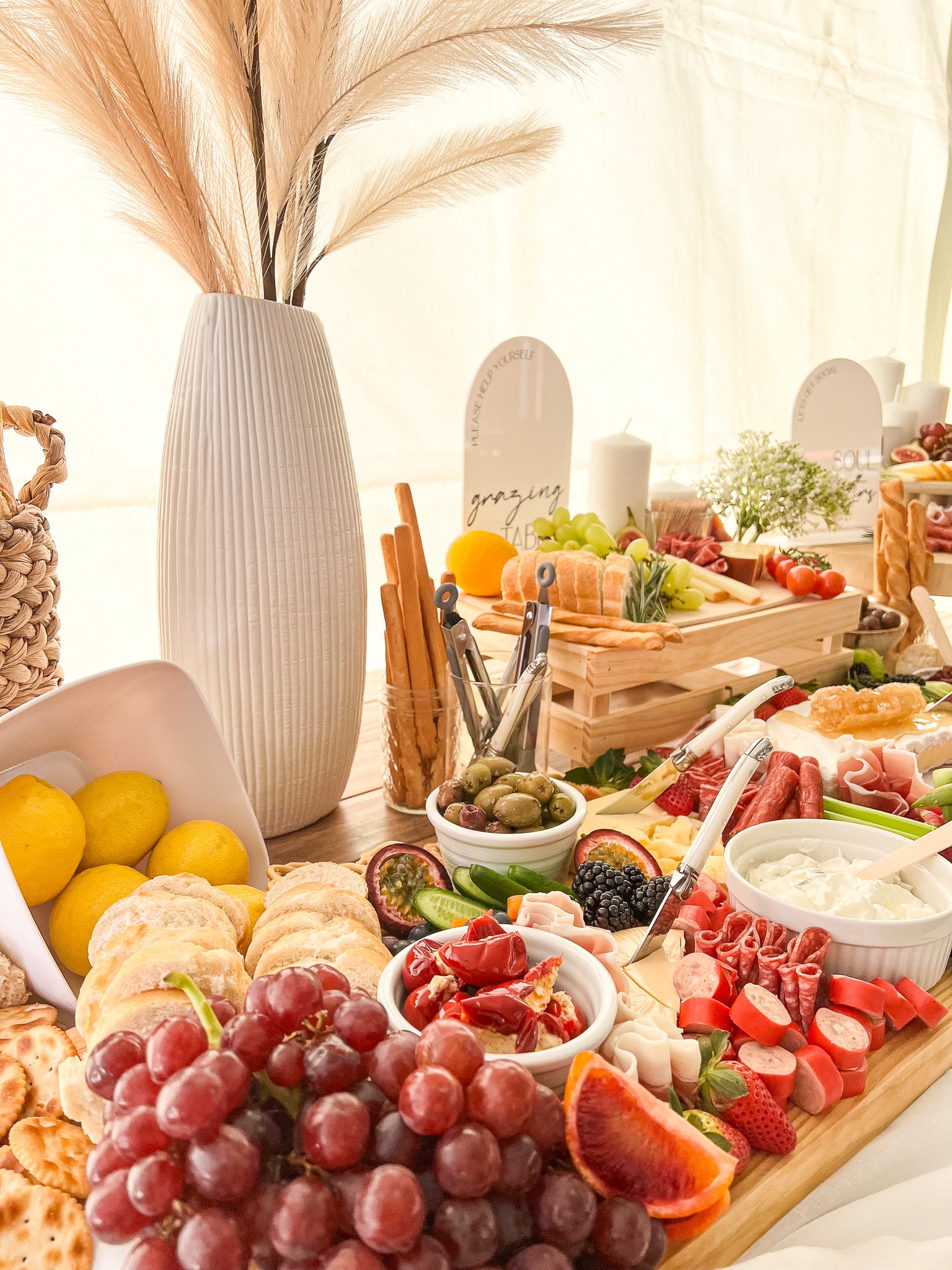 Tables can be made with any combination of charcuterie, fruit, brunch, dessert, or candy